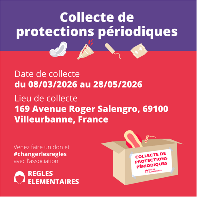 Skip to PDF contentEt une information sur la collecte des produits de protection périodique auprès du grand public piloté par la Métropole en lien avec l’association Règles élémentaires et, pour la Ville de Villeurbanne, Ekaterina Panyukina, Chargée de mission égalité et non-discrimination. Le Passage 33 sera un point de collecte.